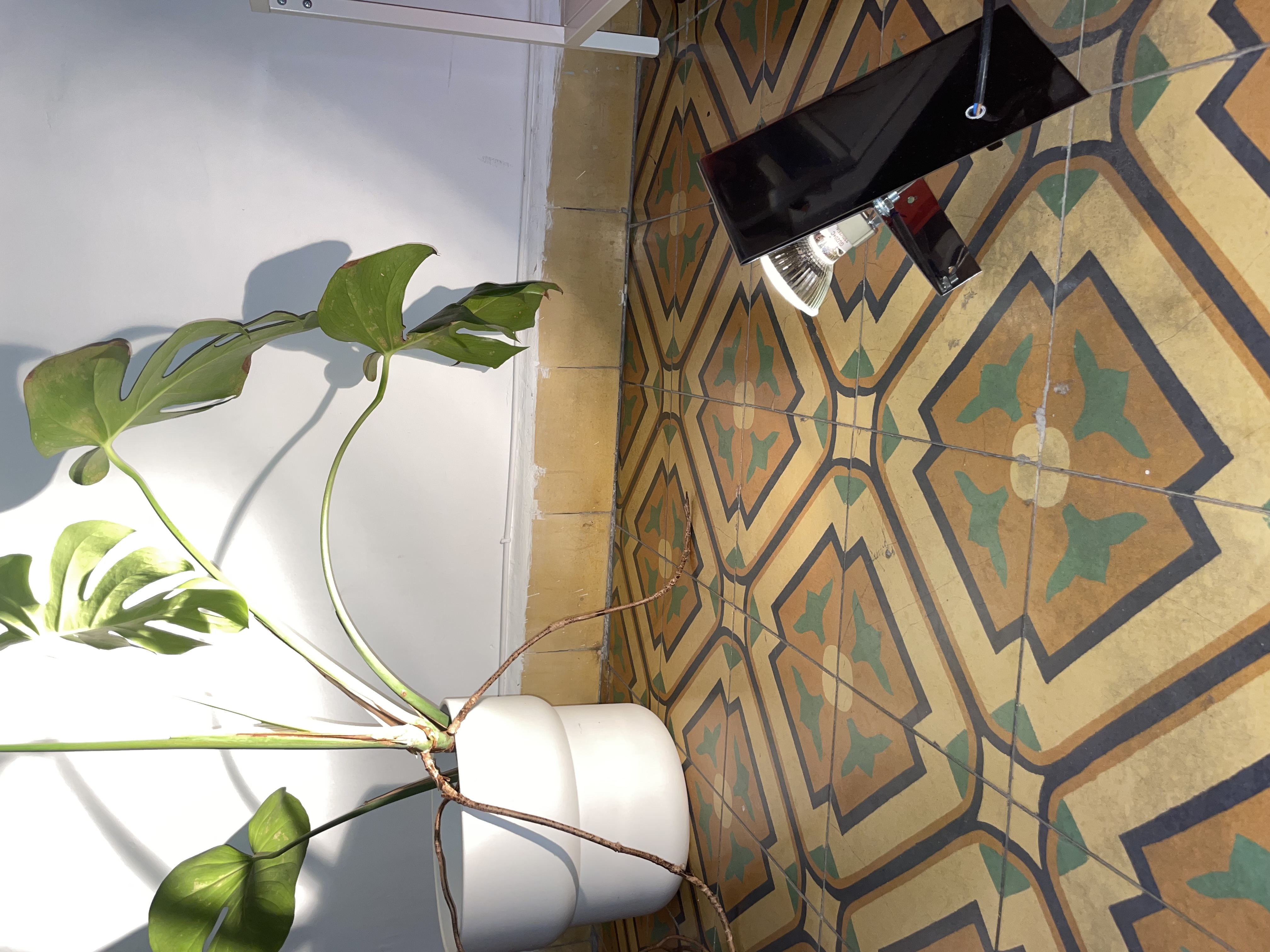 A stainless steel sheet folded three times to house an exposed spot lamp, usually concealed.